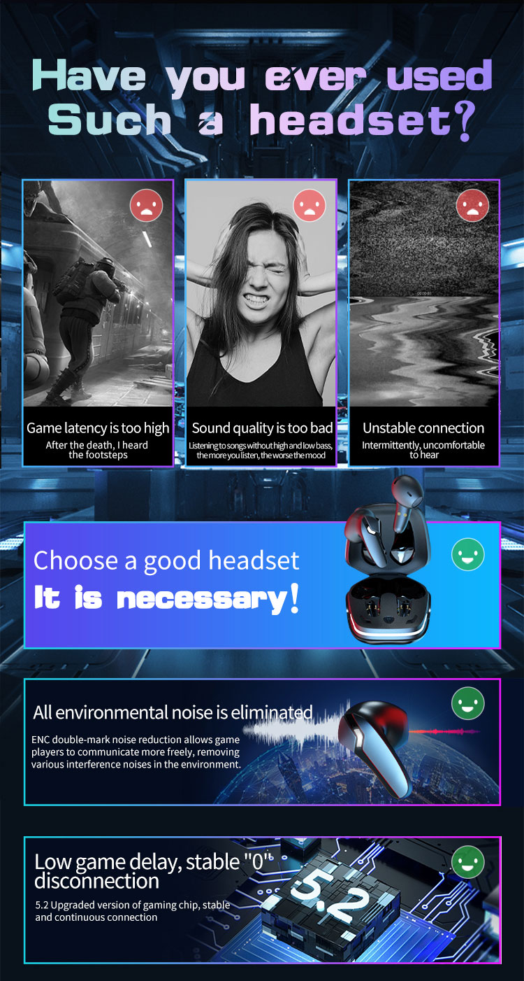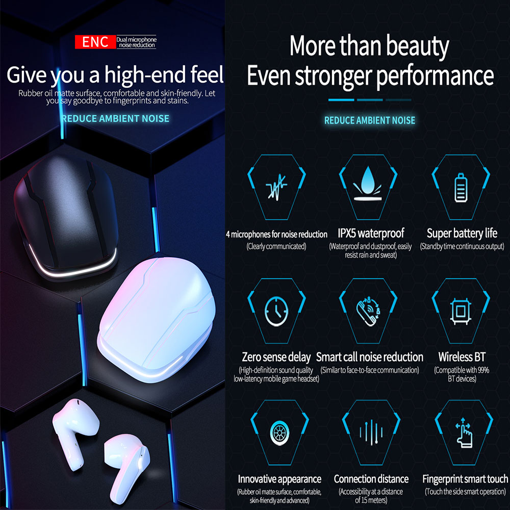 Model No | F69 2022 New private mould ENC double reduce ambient noise gamer gaming headset ear buds |