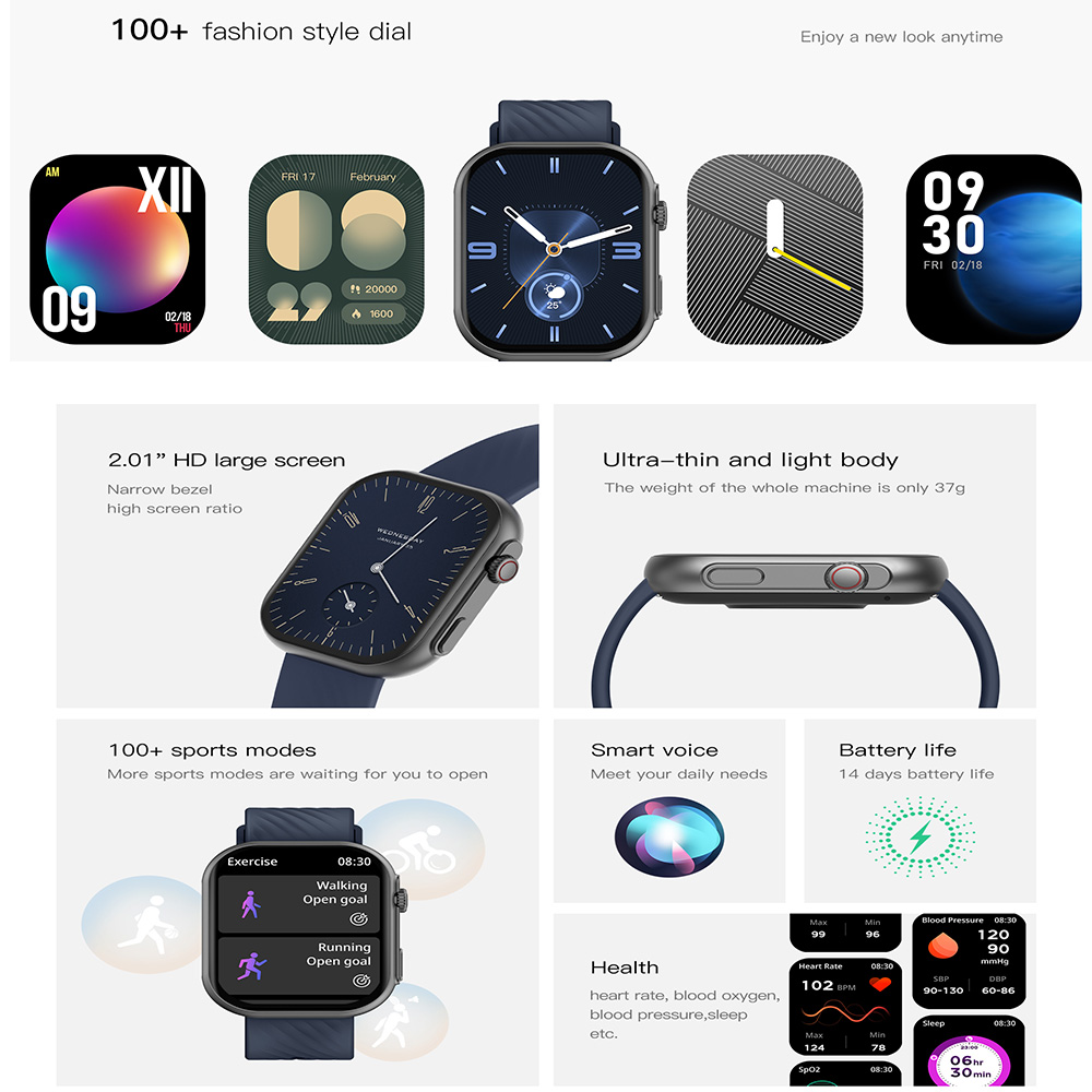 100 Kinds sport modes | Walking, running, cycling, rope skipping, basketball, football, badminton, swimming,100 kinds |