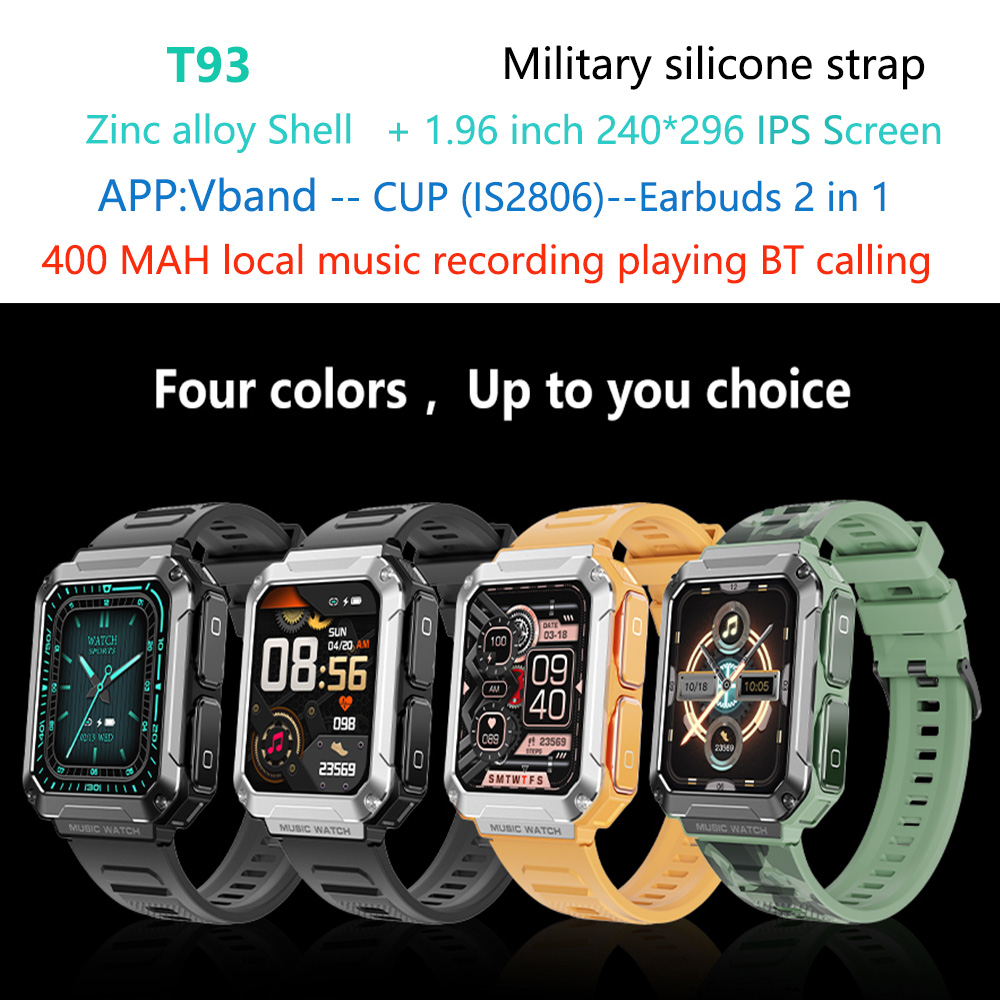 Product Name:T93 outdoor sport local music recording playing BT calling wireless earbuds smart watch |