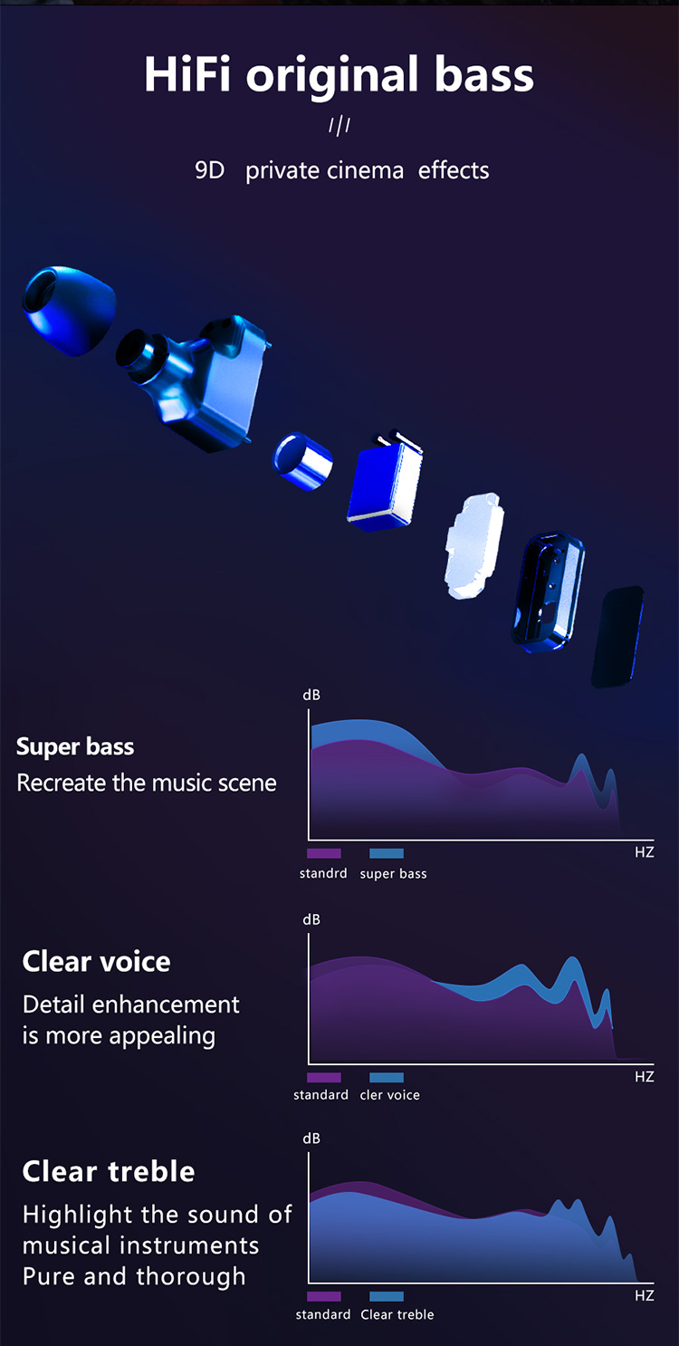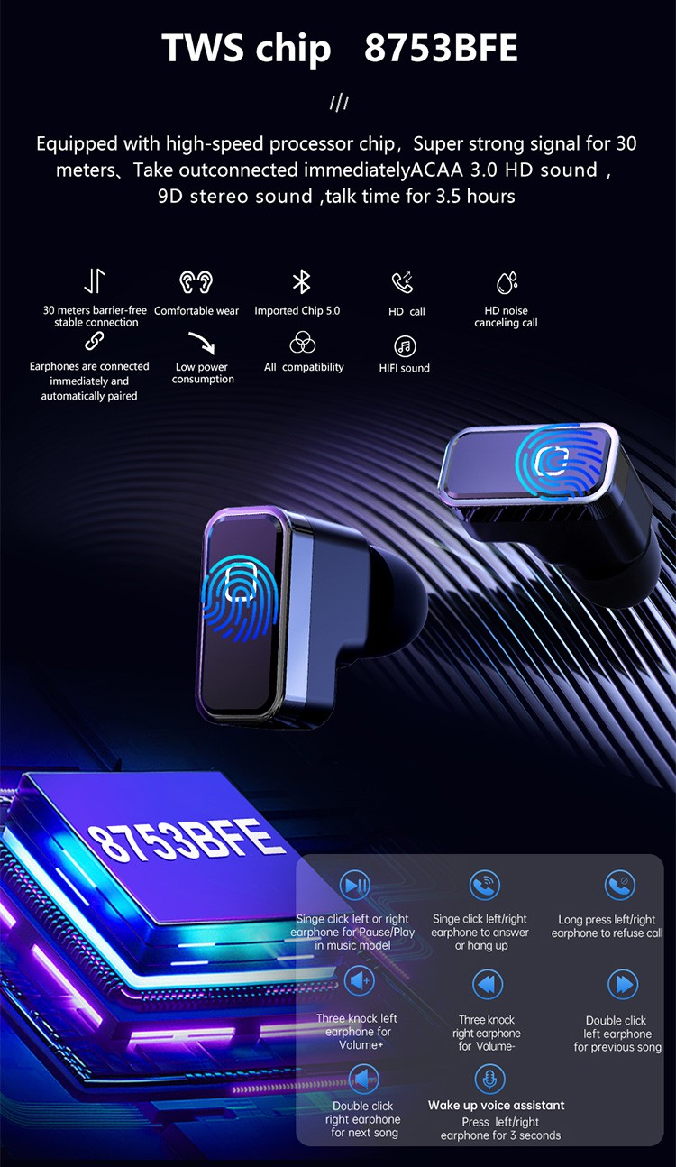 Built in 5.0 dual BT, HIFI 9D sound quality, touch sensor, AI voice SIRI wake-up.
