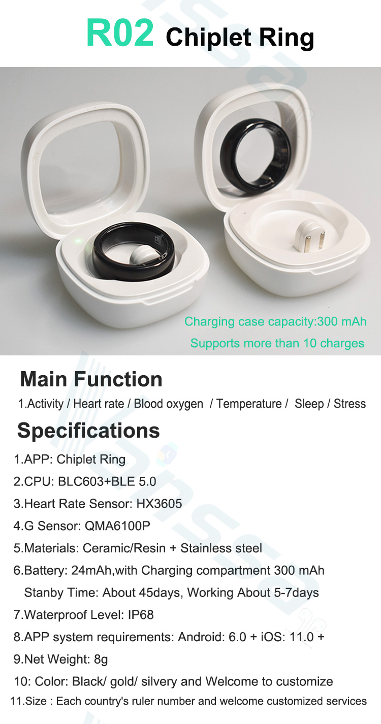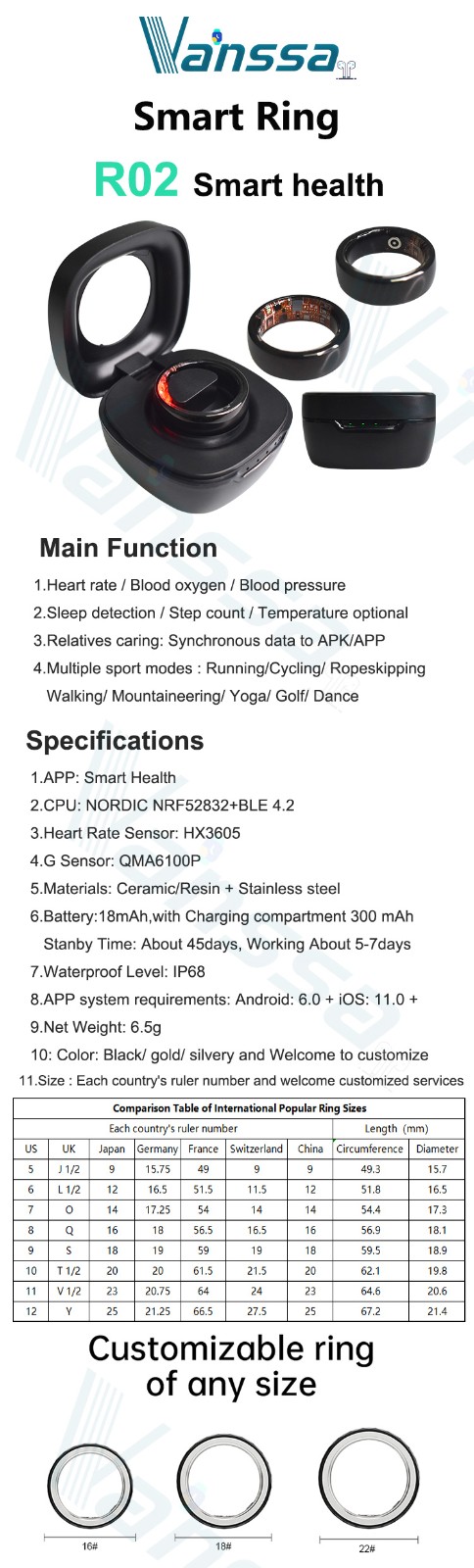 R02 Smart Health APP NORDIC Heart Rate Blood oxygen pressure Multiple sport modes fitness tracker Sleep monitoring smart ring |