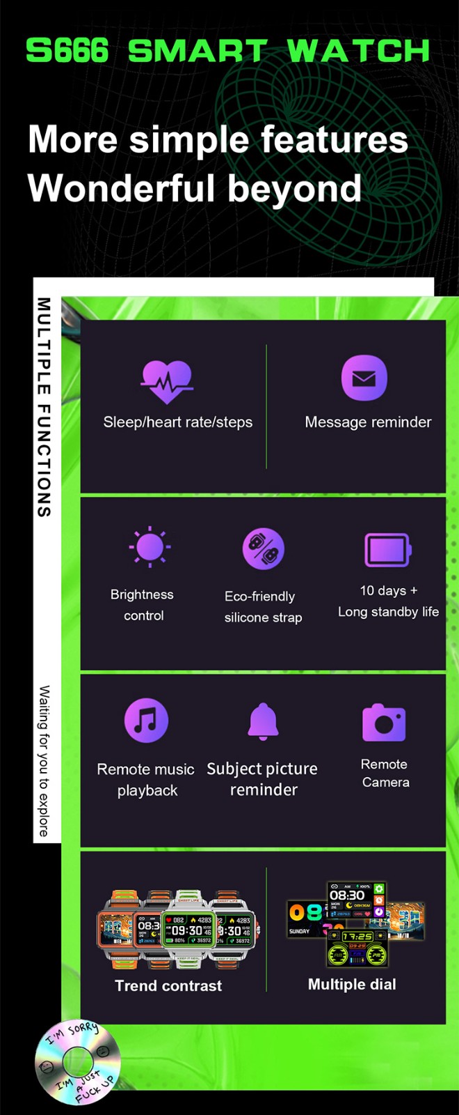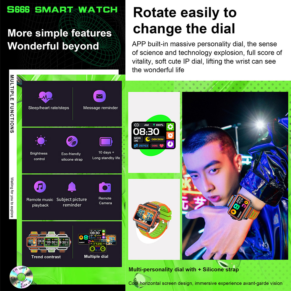 Smart life keep real always bright screen hip hop music fashion game smart watch S666 smartwatch smart watch bracelet S666 |