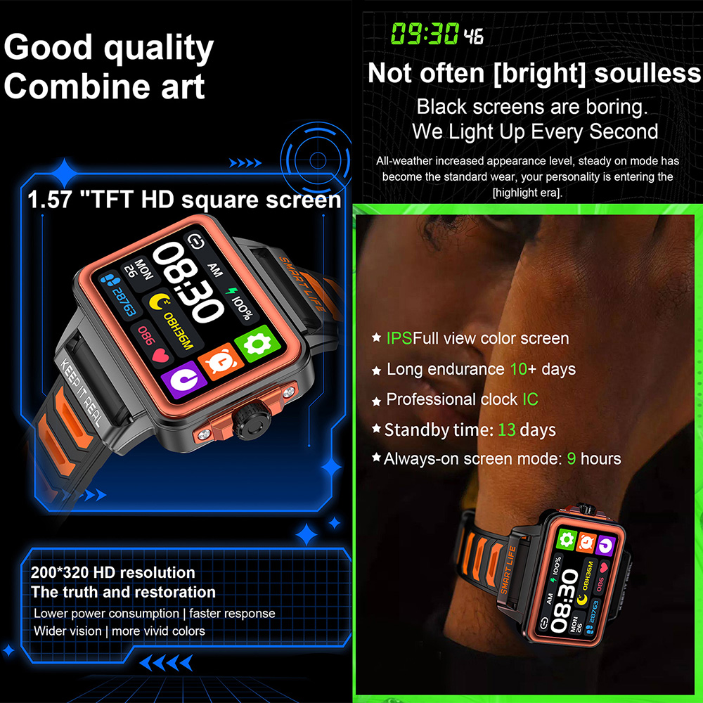 5.Screen:1.5" inch IPS TFT 200*320 Screen Resolution,FULL touch screen