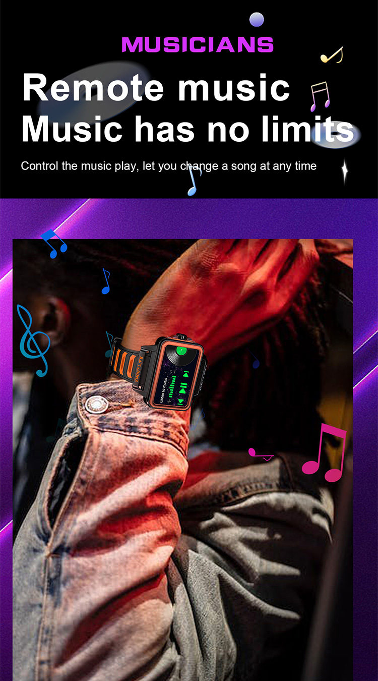 2.Function: Music control playing + long standy+exercise sport counter+health monitoring