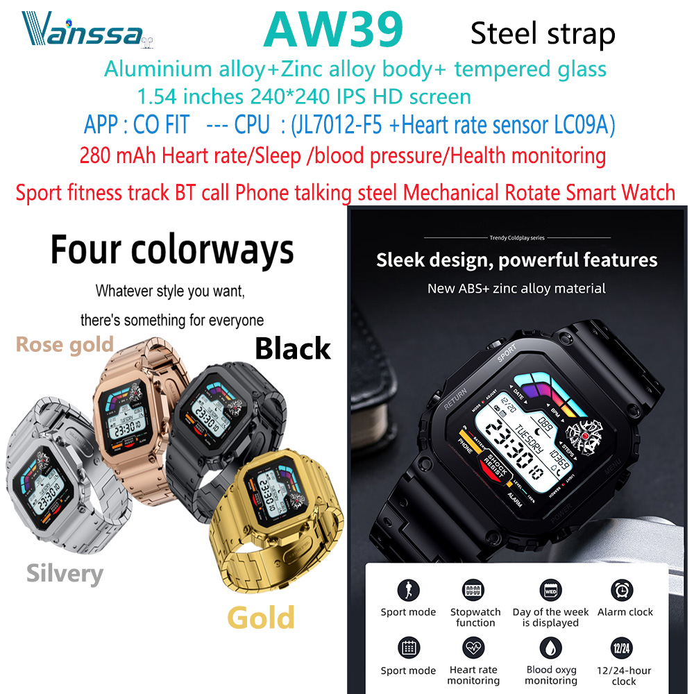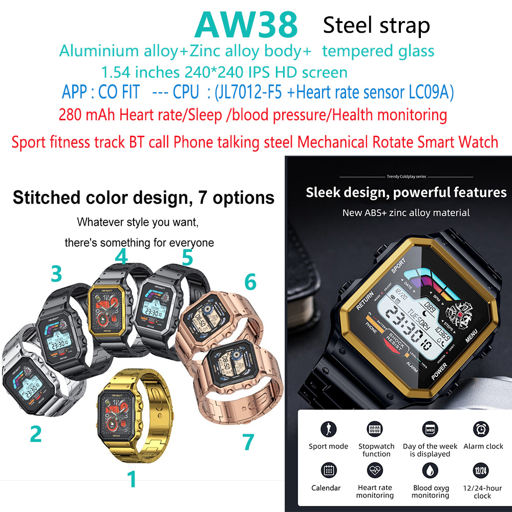 AW38 steel Mechanical Rotate button Fashion health sport fitness tracking BT call phone talking smart watch