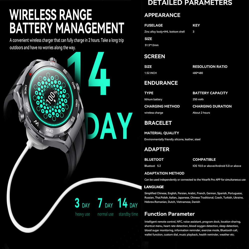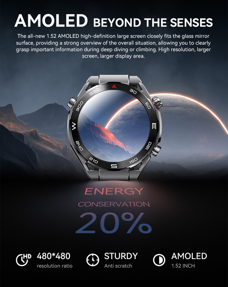 Display screen | 1.52 inch AMOLED screen,480*480 pixel Full touch screen |