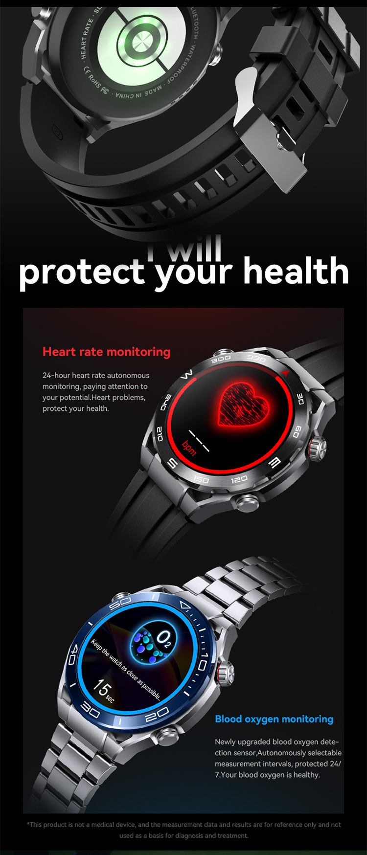 [Health function] Heart rate /Blood oxygen/Blood pressure function/Sleep monitoring /Breathing training /health reminder(sedentary reminder/drinking remind/Mett/overlook reminder/exercise reminder/reading reminder)