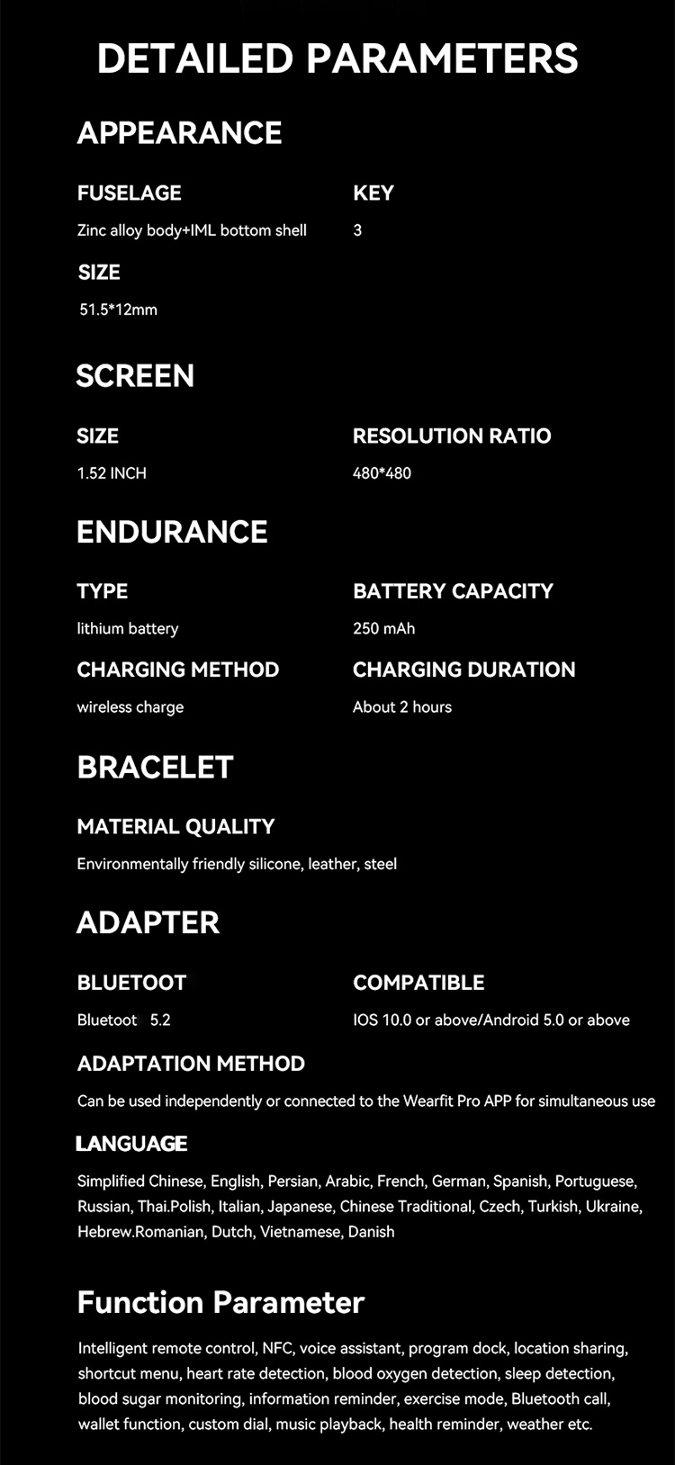 [Other function]Custom watch face/Dial switch /Voice assistant/ NFC access control unlock / Short video remote control /Always-on Display/Offline Alipay/ Game/ Shake to take pictures / Music playback / calculator/Stopwatch/Password lock screen/Automatic/manual time adjustment |