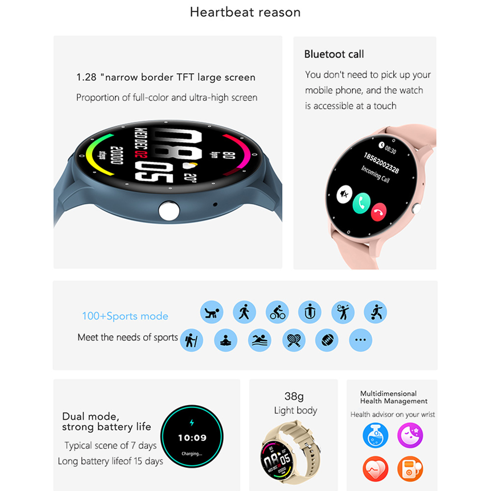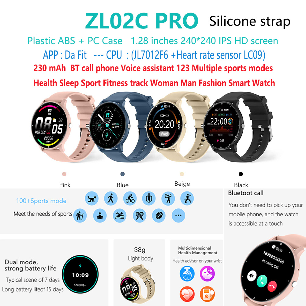 ZL02C PRO Plastic ABS Shell 1.28 inch round TFT screen CPU (JL7012F6) 230 MAH AI voice assistant games 123 sports modes BT call phone smart watch |