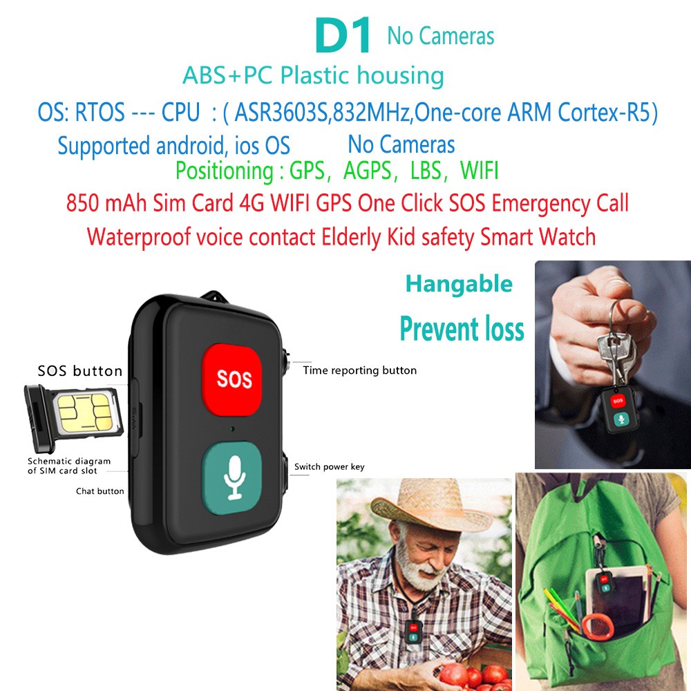 D2 Alzheimer's disease elderly Anti-Lost 4G GPS Tracker Voice Broadcast Time Temperature Fall Detection SOS Smart Wearable devices
