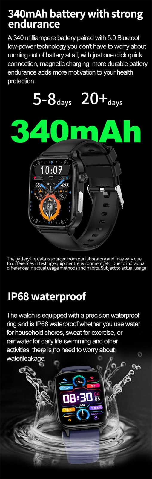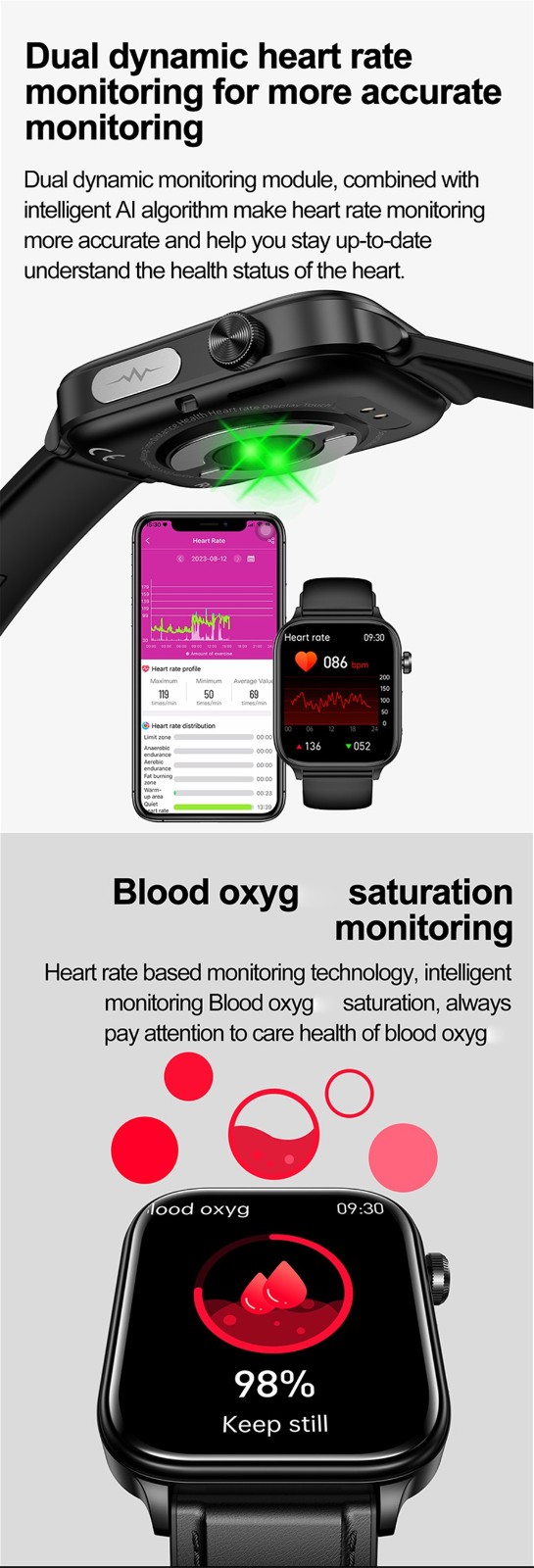 Material | Shell: plastic+stainless steel Bottom shell: PC+ABS+medical 316 steel sheet Watch strap: environmentally friendly silicone/leather watch strap |