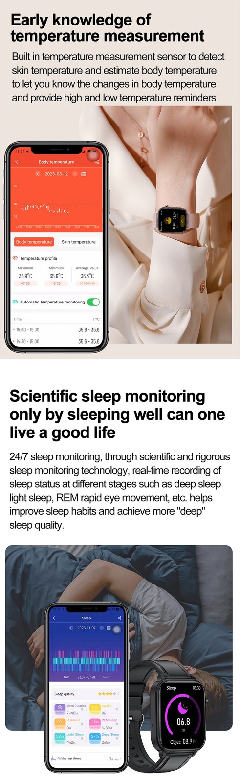 ET570 BT call phone talking sleep temperature HRV ECG Health sport fitness monitoring smart watch |